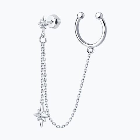 Chic silver ear cuff earring adorned with sparkling cubic zirconia