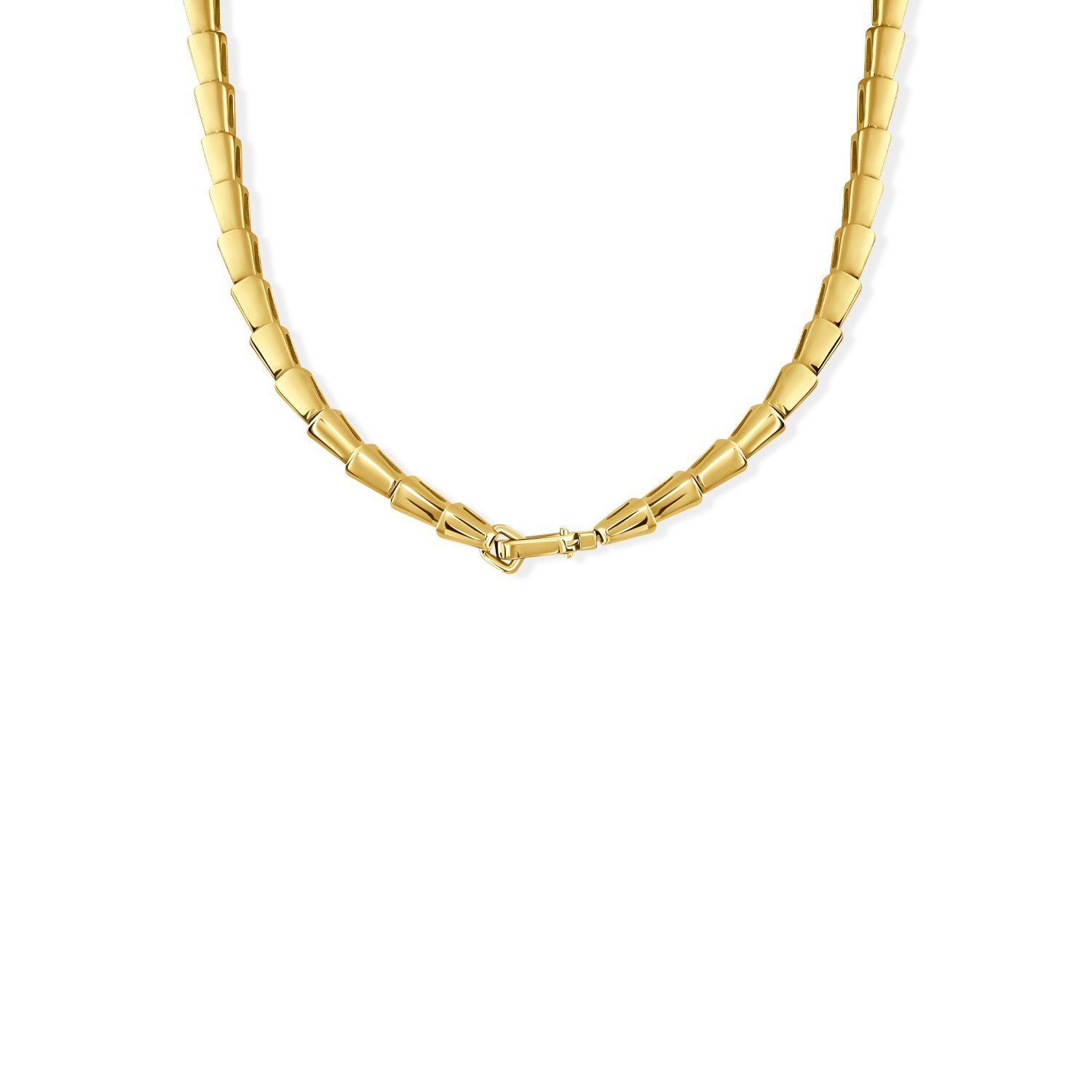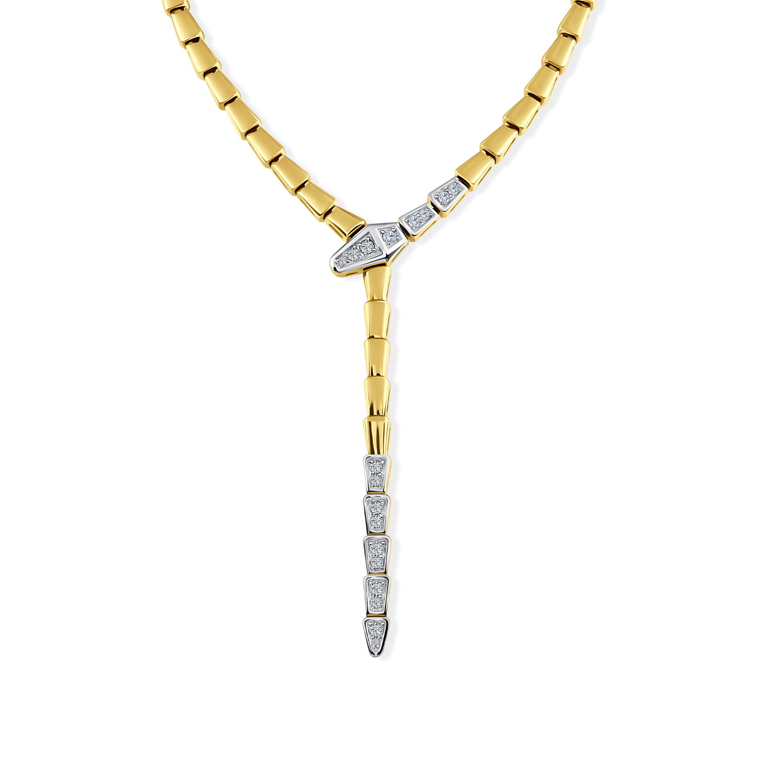 A statement of power and refined elegance, this high jewellery necklace is masterfully designed in gold and set with brilliant diamonds that cascade in a graceful silhouette. The structured drop design elongates the neckline, creating a striking yet sophisticated presence.