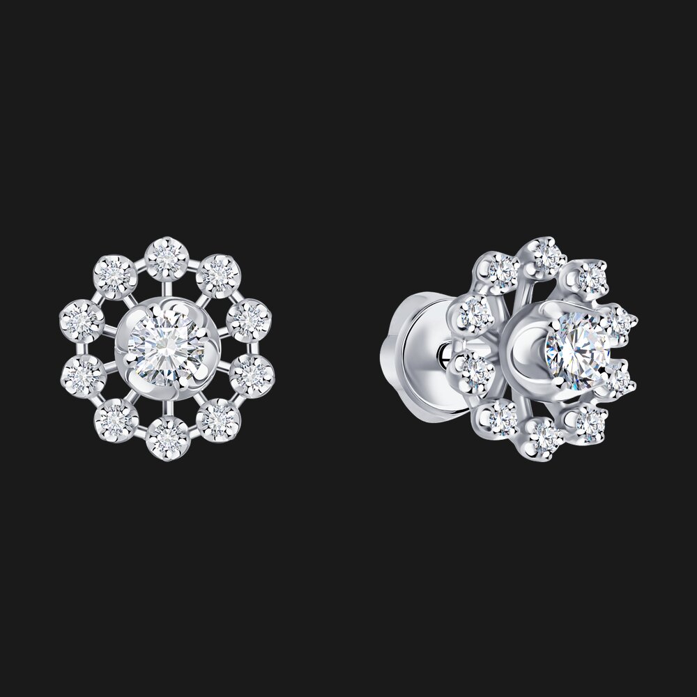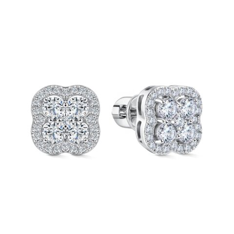 Add instant sparkle to any look with these elegant white gold diamond stud earrings. Designed with a brilliant center diamond surrounded by a radiant halo, they catch the light beautifully from every angle. Perfect for everyday wear or special occasions, these timeless studs offer effortless luxury and lasting shine.