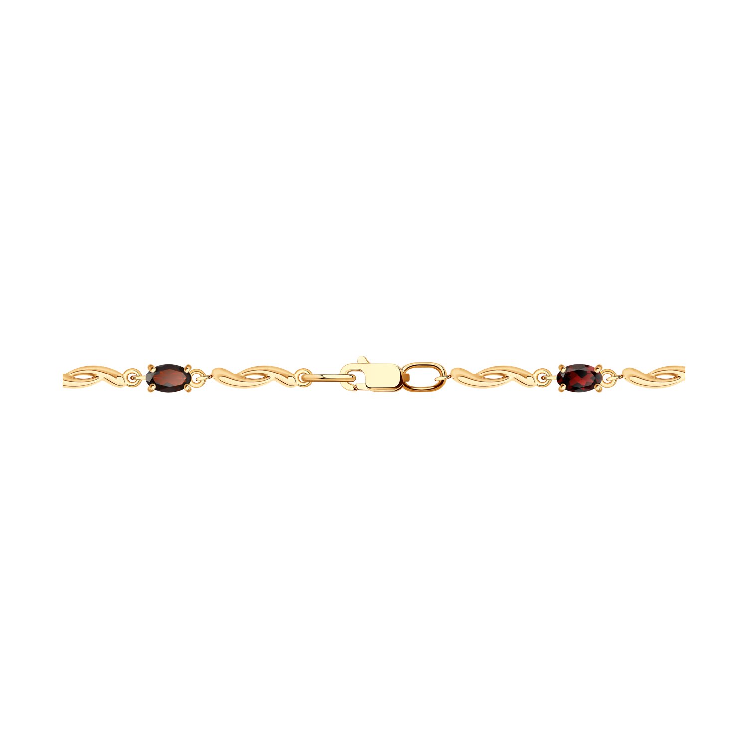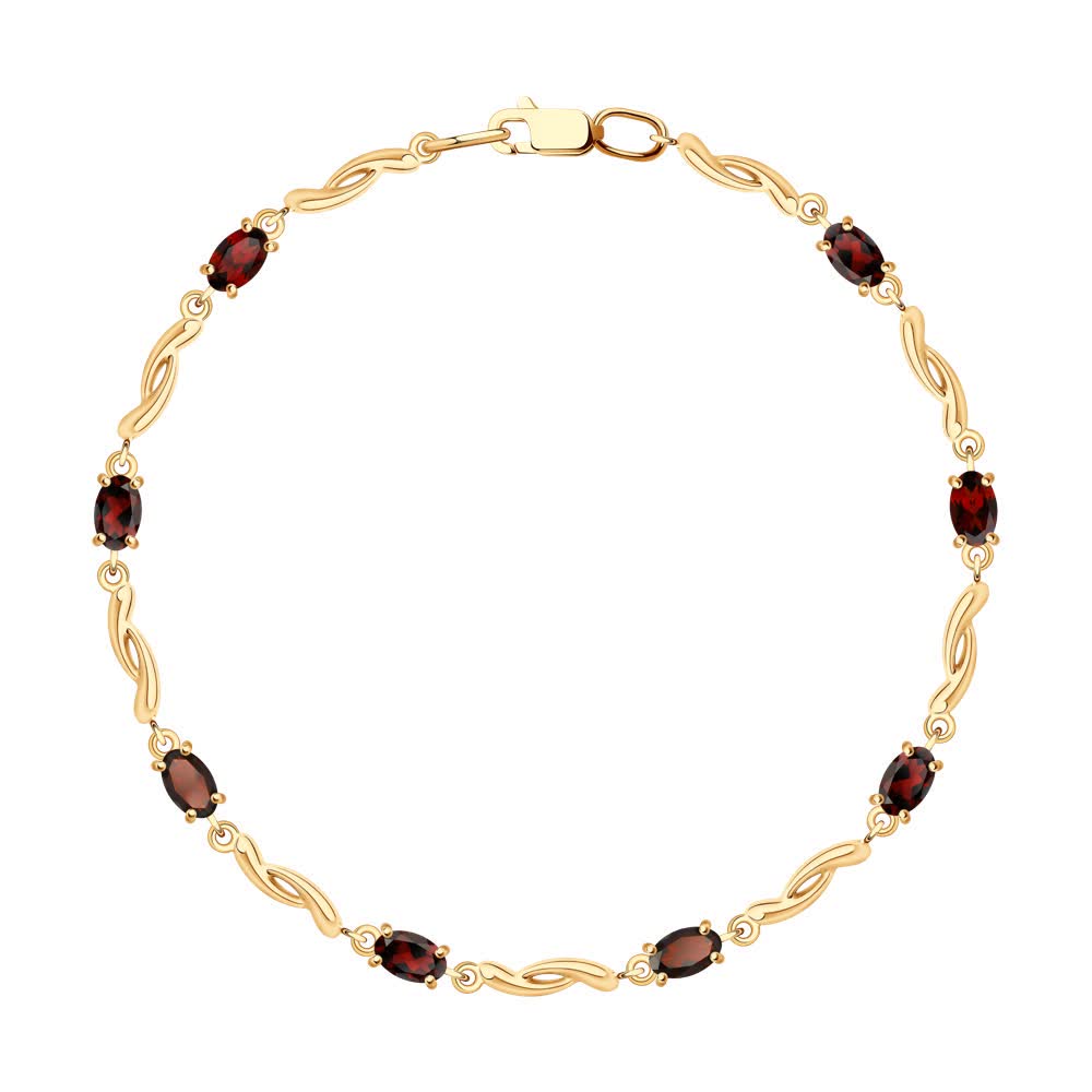 This refined gold bracelet features deep red garnet stones set in an alternating pattern with delicately twisted gold links. The rich hue of the garnets adds a bold, elegant touch, while the warm gold setting provides timeless charm. Secured with a sturdy clasp, this piece is ideal for both everyday sophistication and special occasions.