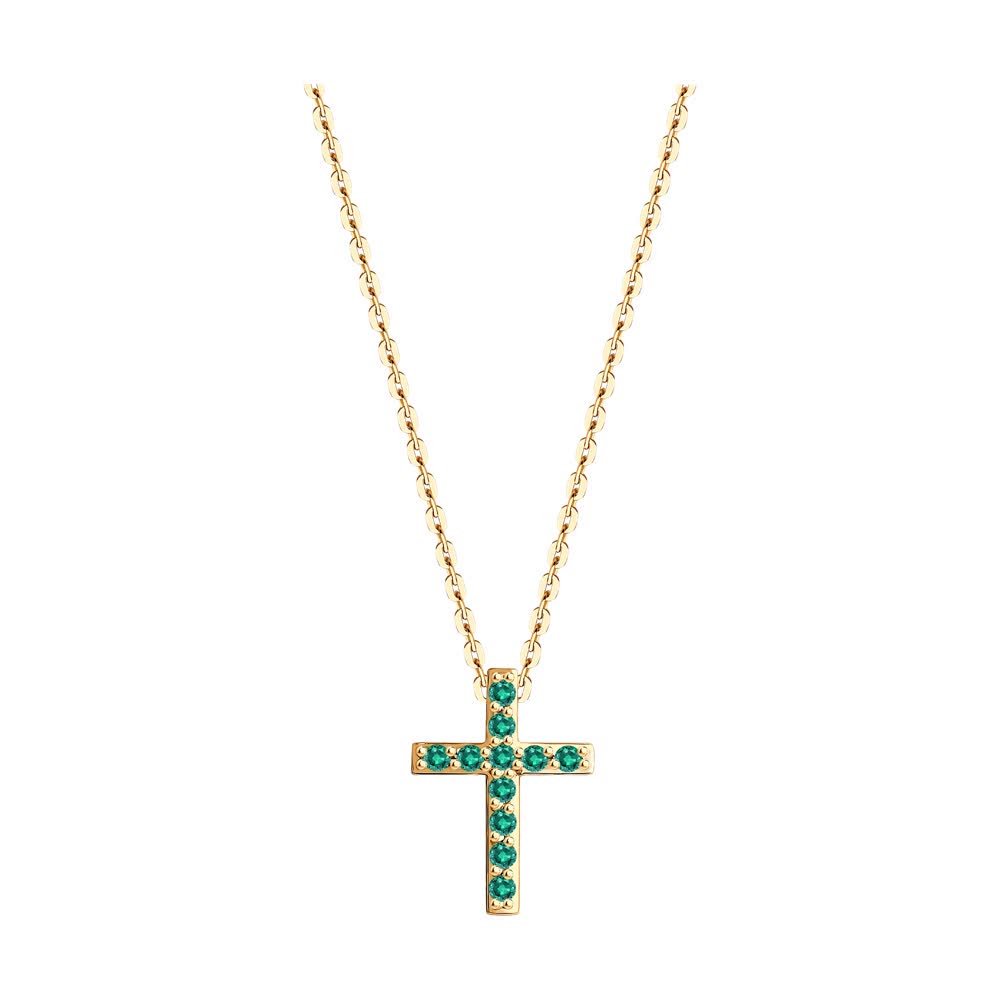 This elegant gold cross necklace is a timeless symbol of faith and beauty, enhanced with a vibrant, modern twist. Crafted from polished gold-tone metal, the pendant features a classic cross silhouette adorned with a series of vivid green stones (emeralds). Each stone is carefully set to maximize sparkle and contrast, creating a striking visual impact against the warm gold backdrop. Suspended from a delicate yet durable gold chain, the necklace offers a perfect balance of spiritual symbolism and contemporary style. Whether worn as a meaningful personal piece or a thoughtful gift, this necklace brings a refined touch to any look.