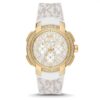 The dial is a true work of art, featuring a luminous mother-of-pearl background that shimmers with subtle hues as it catches the light. This exquisite surface is framed by a sparkling crystal-accented bezel and features three functional chronograph sub-dials, blending beauty with practicality. Perfectly polished and endlessly versatile, the Bradshaw watch transitions seamlessly from your daytime look to evening elegance.