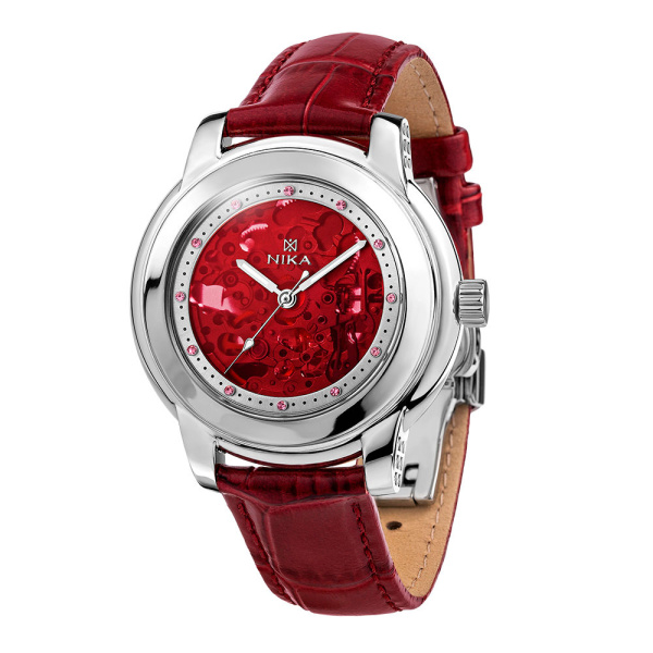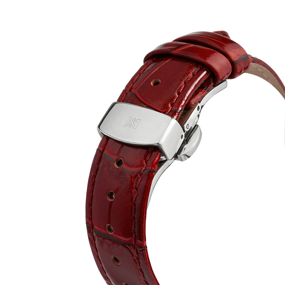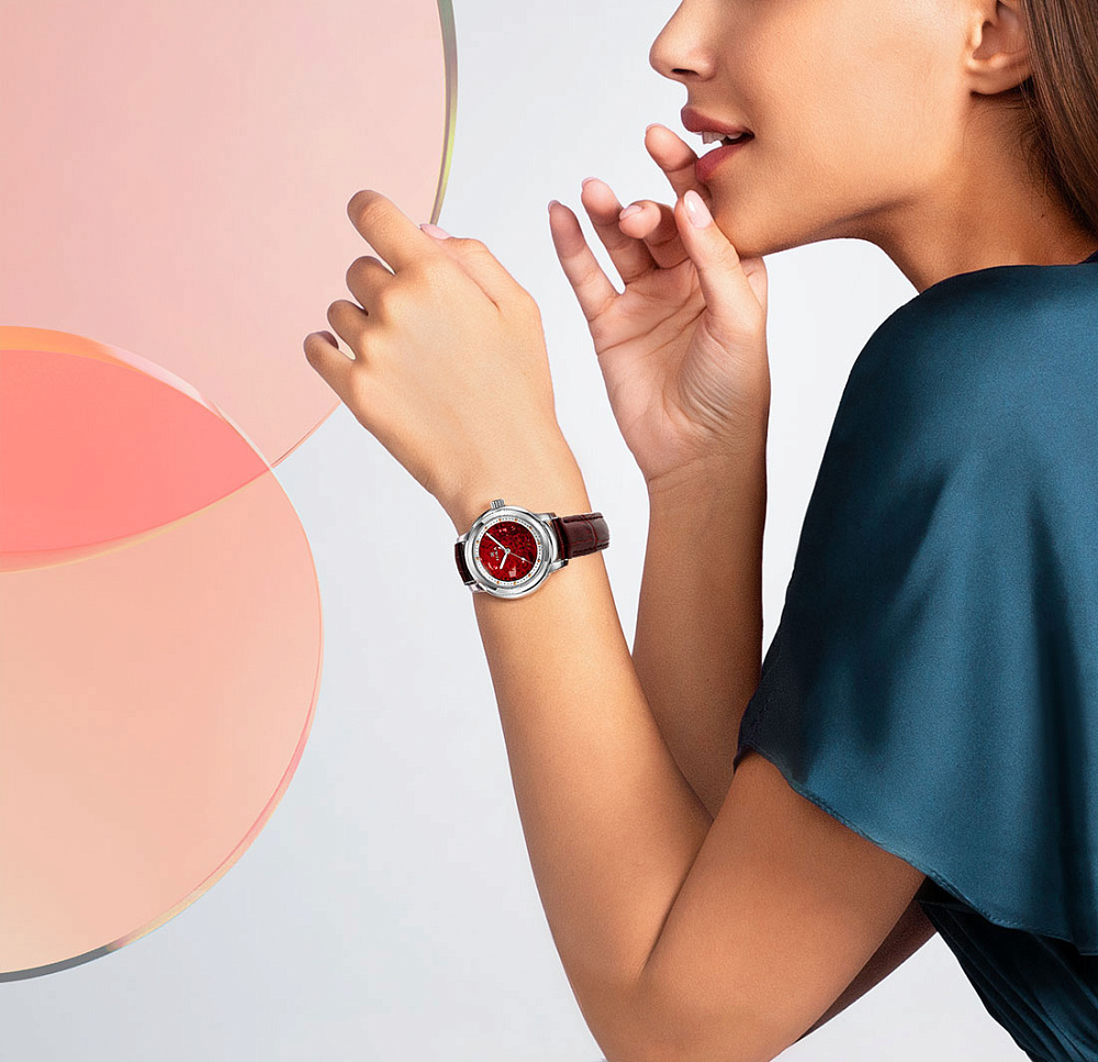 Designed for women who appreciate sophisticated details, this watch combines precious metals, a vibrant red dial, and classic craftsmanship, making it a striking accessory for both everyday wear and special occasions.