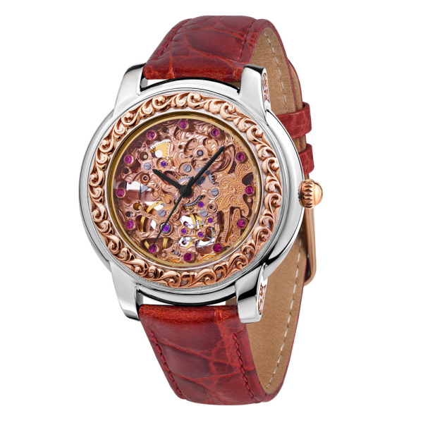 Combining precious metals, rich ruby accents, and a reliable automatic movement, this timepiece offers both elegance and everyday functionality. The light brown dial and classic round case create a timeless design that complements business attire, formal wear, or refined casual style.
