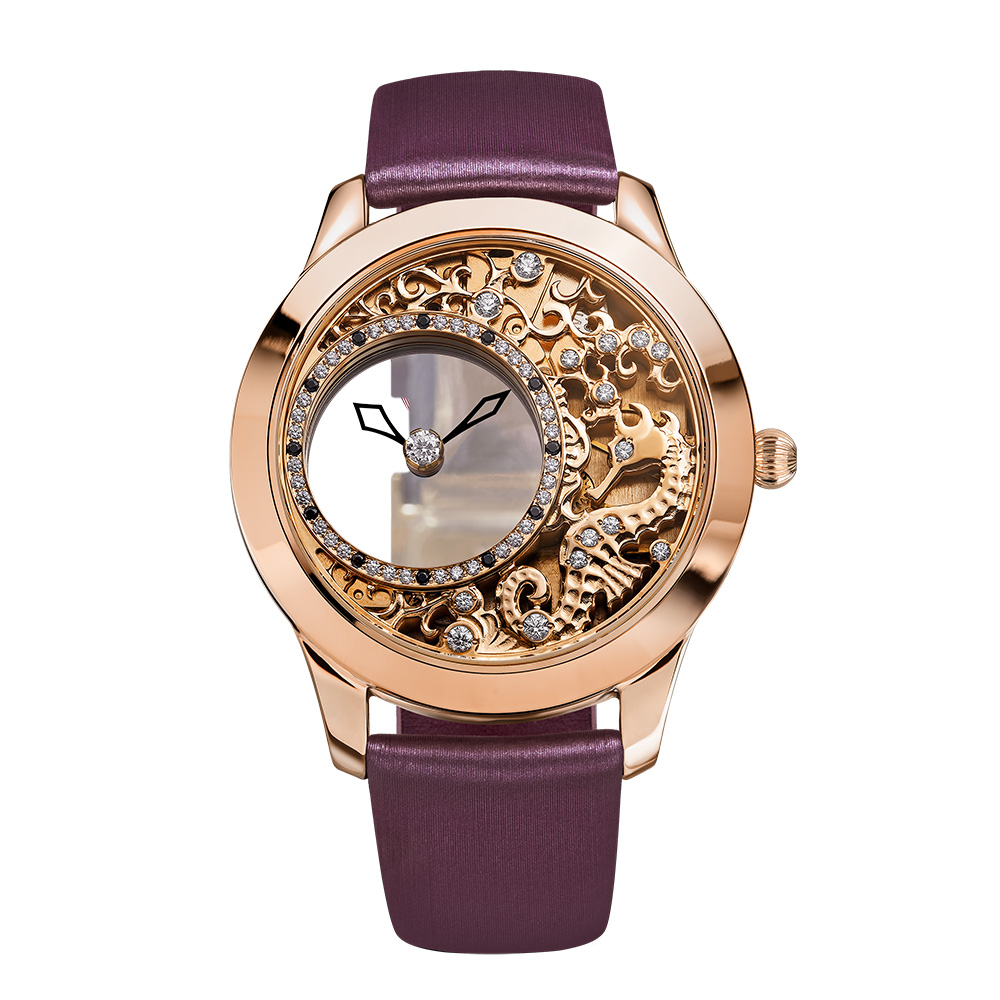 Combining gold craftsmanship, sparkling stones, and a soft satin strap, this watch offers a graceful and feminine look. It is designed for women who appreciate elegant accessories that complement both everyday outfits and special occasions.
