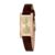 The soft gold dial is minimal and sophisticated, offering a clean, easy-to-read design that complements both casual and formal looks. Paired with a smooth brown leather strap, the watch sits comfortably on the wrist while adding a polished finishing touch to any outfit.