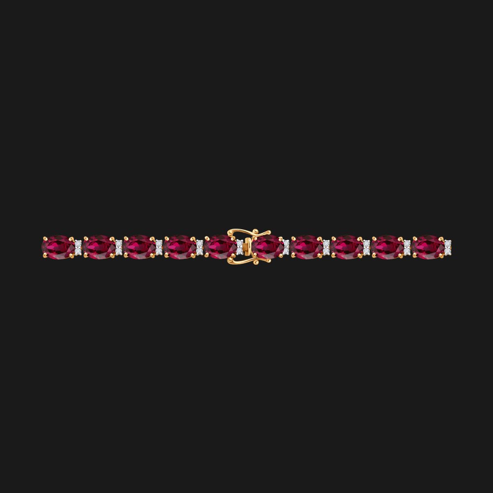Exuding regal sophistication, this exquisite gold bracelet is adorned with 22 vivid natural rubies totaling an impressive 26.84 carats. Each ruby is expertly cut and prong-set to highlight its rich crimson hue, creating a striking contrast against the warm glow of high-polish gold. Adding to its brilliance are precisely placed natural diamonds, which lend a radiant sparkle and luxurious finish.