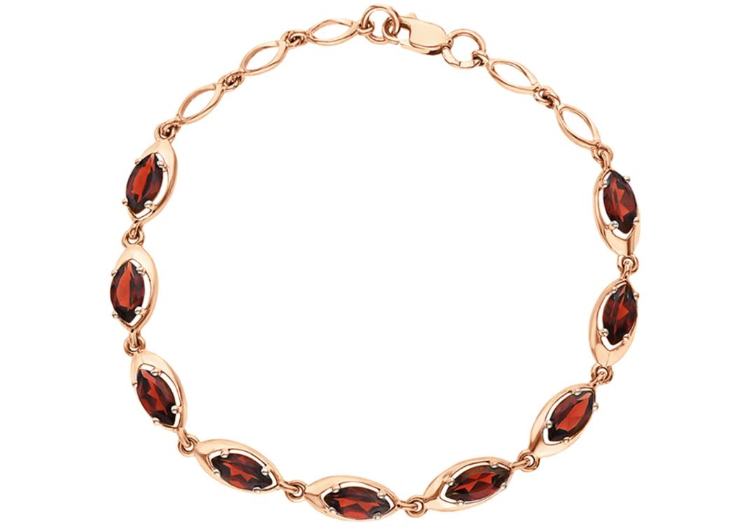 Adorn your wrist with the rich, fiery beauty of our Rose Gold-Tone Bracelet featuring Natural Garnet. This exquisite bracelet showcases a series of genuine Natural Garnet gemstones, each expertly cut in a graceful marquise shape, radiating a deep, captivating red hue.