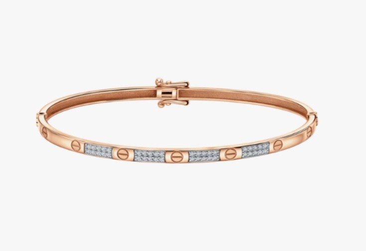 This exquisite bangle blends the warmth of rose gold with the brilliance of cubic zirconia for a look that is both modern and timeless. The sleek band is accented with signature screw motifs and shimmering stone details, creating a perfect balance of strength and elegance. Designed for effortless sophistication, it can be worn as a solo statement or stacked for a bold, layered style.