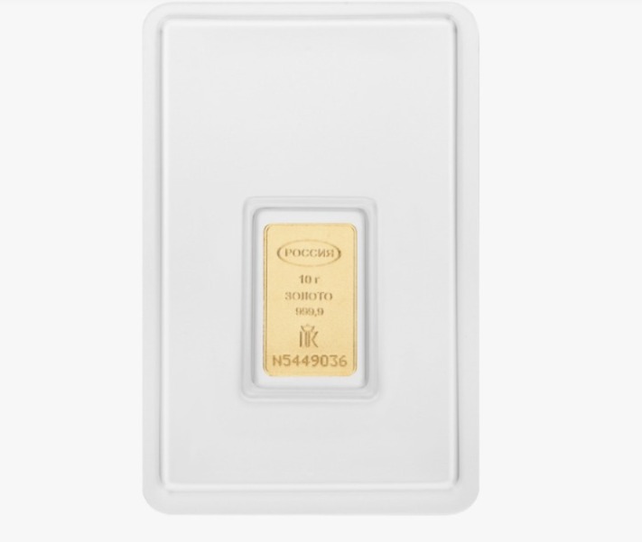 Add to cartThis is an investment-grade gold bar, crafted from 999.9 fine gold. The bar weighs 10 grams and is authenticated by its clear, stamped inscriptions. The front of the bar features the Russian word for gold, “ЗОЛОТО,” its weight “10г,” and its purity “999,9.” A unique serial number is also stamped on the bar to ensure authenticity and traceability. This solid gold bar is a tangible asset, ideal for collectors or as a reliable store of value for investment.