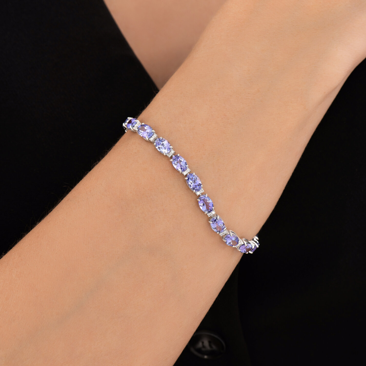 Complementing the sapphires are 44 natural white diamonds (0.44 carat total), delicately set between each sapphire to enhance the brilliance and sophistication. This bracelet is a powerful symbol of refined luxury and enduring style, making it a standout gift or a treasured personal indulgence.