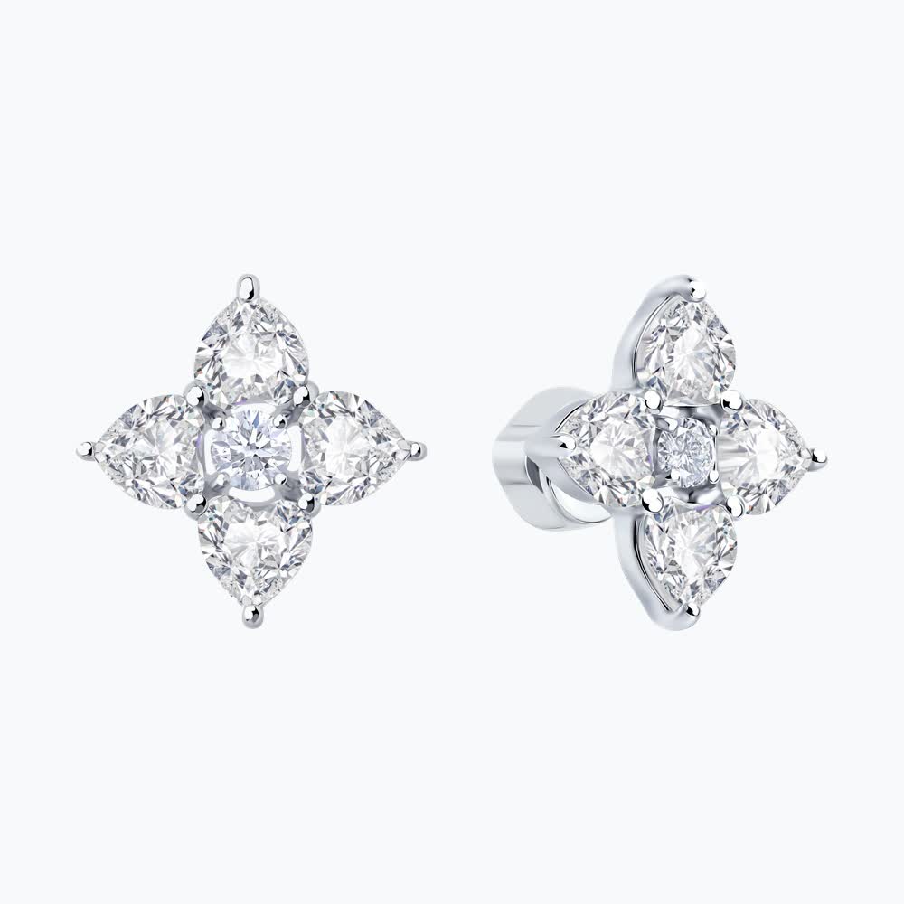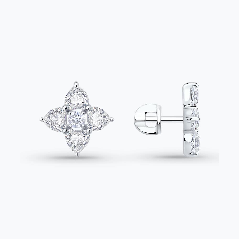 Add to cartElevate your style with these stunning cluster stud earrings. Featuring five brilliant cubic zirconia stones in an elegant star/flower formation—four pear-cut stones surrounding a sparkling round center—all set in lustrous silver-tone metal. Perfect for adding sophistication to any look.