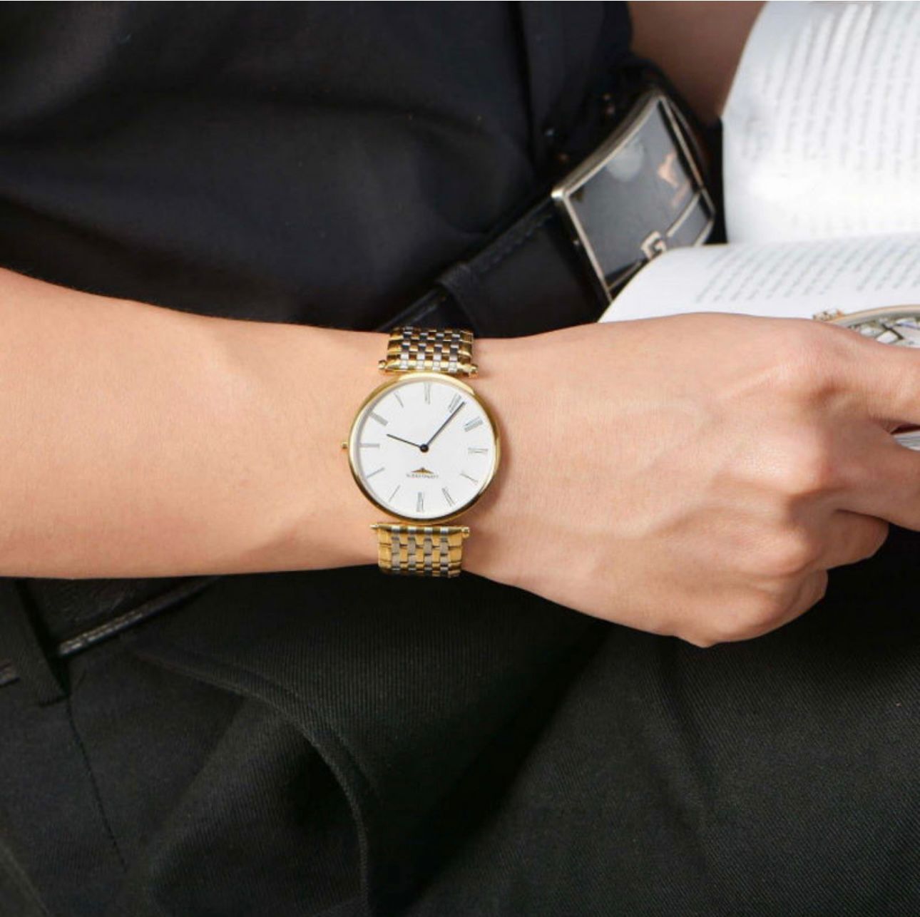Refined, elegant, and timeless. The Longines La Grande Classique is more than a watch—it’s a statement of classic taste. Its ultra-thin profile and polished two-tone design effortlessly blend modern style with enduring luxury. A crisp white dial with classic Roman numerals stands out, protected by a scratch-resistant sapphire crystal. This is a watch that doesn’t shout for attention; it commands it with quiet confidence.