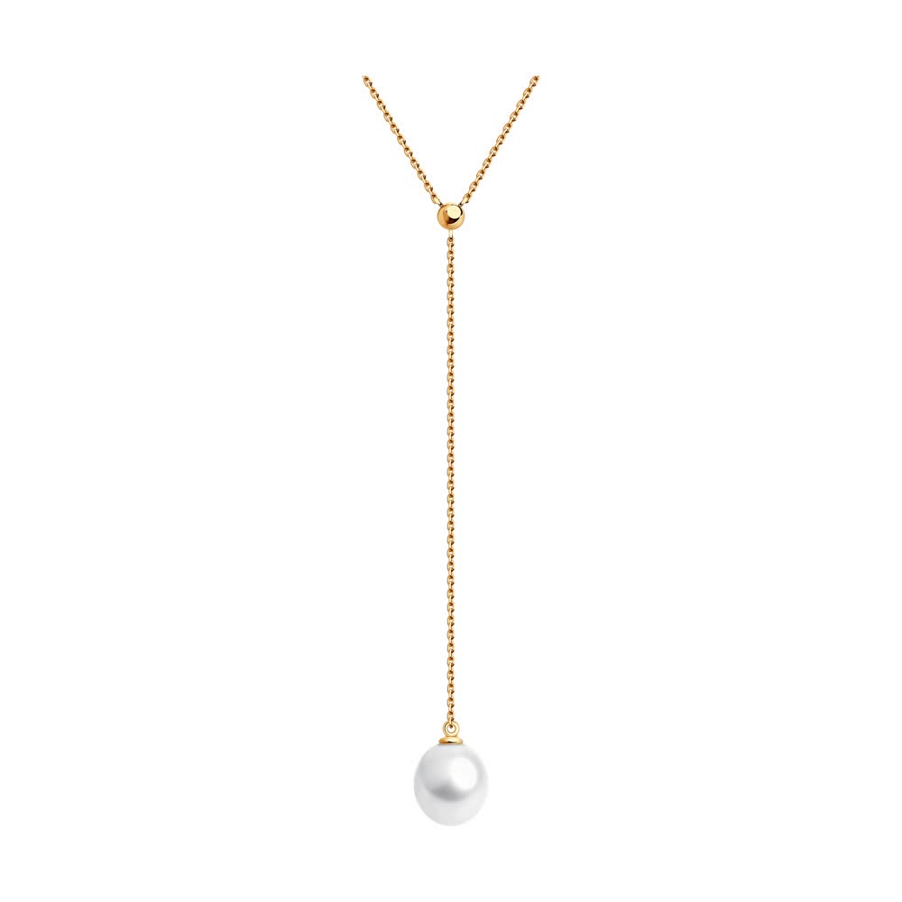 This refined Y-shaped lariat necklace effortlessly combines modern elegance with timeless appeal. Crafted from polished gold, the delicate chain loops through a sleek, spherical bead, creating a graceful drape. A single luminous white pearl anchors the drop, serving as a stunning focal point. The minimalist design highlights the pearl’s natural beauty, while the adjustable lariat style offers versatile wear. Ideal for both special occasions and elevating everyday looks with understated sophistication.