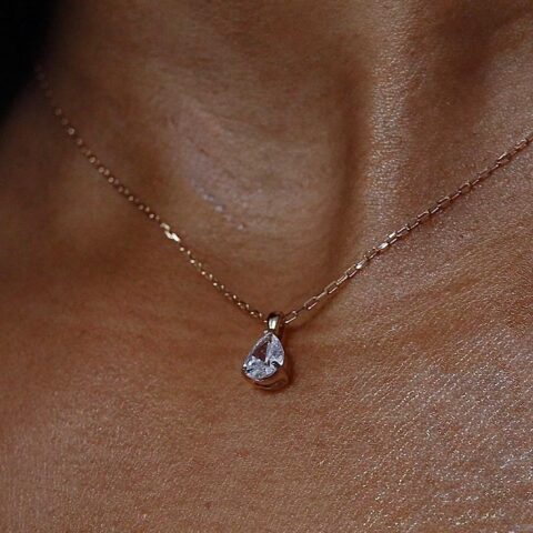 This exquisite teardrop pendant embodies refined simplicity and breathtaking brilliance. Featuring a stunning pear-cut cubic zirconia stone that captures and reflects light with every movement, this necklace creates a mesmerizing display of fire and radiance in a lustrous silver-tone setting.