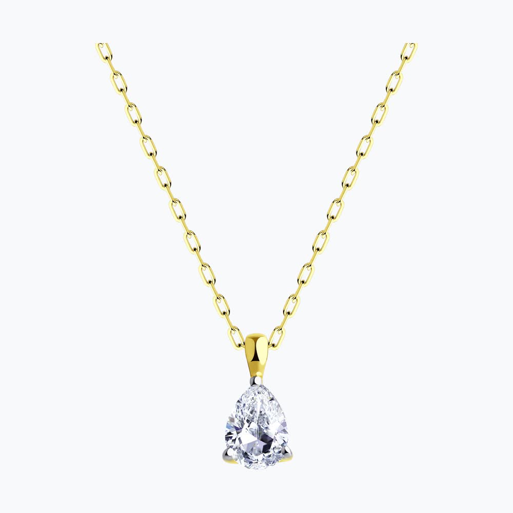 The graceful teardrop silhouette is a timeless symbol of elegance, while the pear-cut stone maximizes brilliance through expert faceting. The lustrous yellow gold setting adds warmth and luxury, creating a rich, classic look that complements all skin tones. The three-prong setting showcases the stone’s beauty while ensuring secure placement.