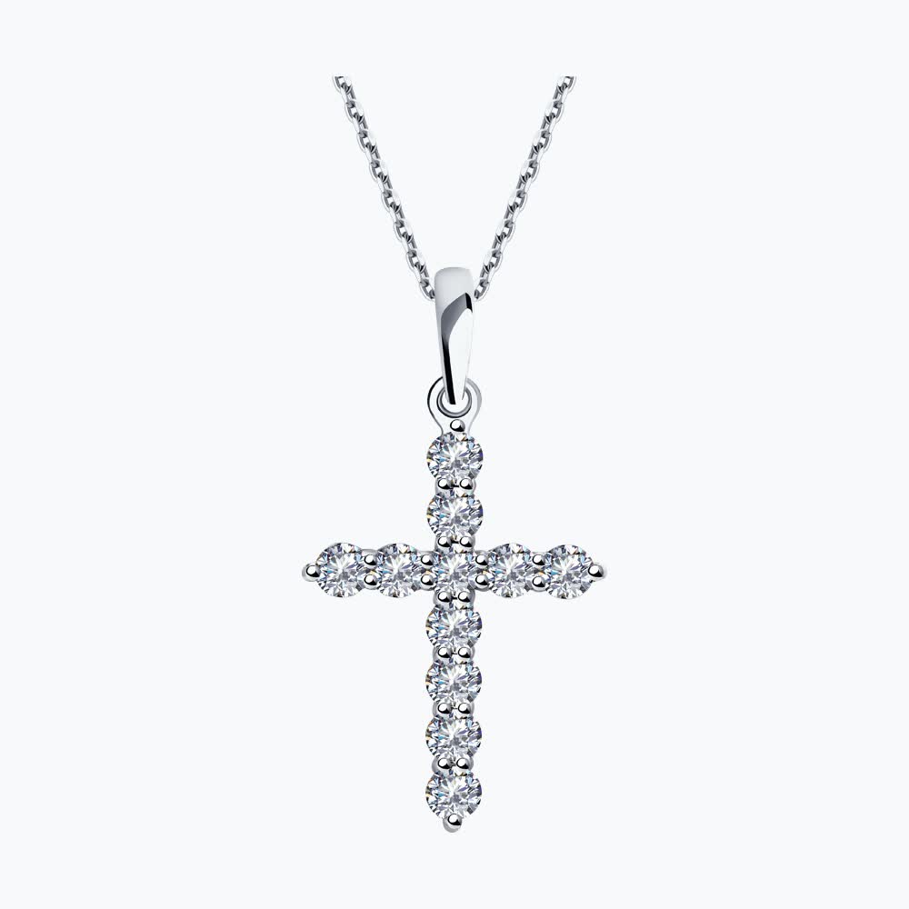 This exquisite white gold cross pendant is adorned with brilliant round-cut diamonds, each carefully set to create a dazzling display of light. The sleek white gold enhances the diamonds’ sparkle, making the piece both timeless and modern. A perfect emblem of faith, devotion, and elegance, this pendant is ideal for daily wear or as a meaningful gift for life’s most special moments.