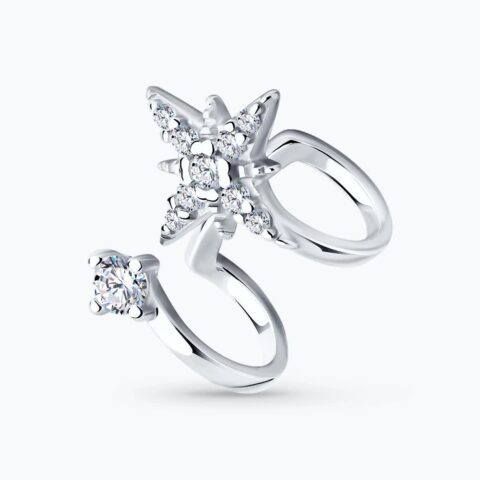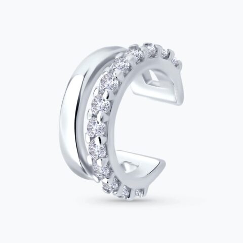 Chic silver ear cuff earring adorned with sparkling cubic zirconia